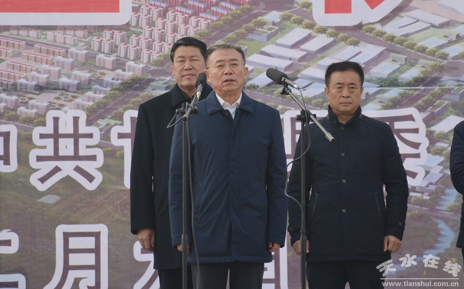 王軍代表市四大組織對天水經(jīng)濟技術(shù)開發(fā)區(qū)冀城產(chǎn)業(yè)園基礎(chǔ)設(shè)施項目開工建設(shè)表示熱烈祝賀。他說,建設(shè)開發(fā)區(qū)冀城產(chǎn)業(yè)園,是貫徹落實國務(wù)院《關(guān)于促進國家級經(jīng)濟技術(shù)開發(fā)區(qū)轉(zhuǎn)型升級創(chuàng)新發(fā)展若干意見》、實現(xiàn)省委、省政府“打造千億元開發(fā)區(qū)”奮斗目標、培育我市工業(yè)經(jīng)濟發(fā)展新的增長極的重大戰(zhàn)略舉措,對拓展開發(fā)區(qū)發(fā)展空間、優(yōu)化產(chǎn)業(yè)布局、促進轉(zhuǎn)型升級、加快甘谷縣域經(jīng)濟發(fā)展、為甘谷群眾提供就業(yè)渠道等具有重要的戰(zhàn)略意義。開發(fā)區(qū)管委會要堅持“產(chǎn)城融合發(fā)展”的理念,高起點規(guī)劃,高標準建設(shè),加快冀城產(chǎn)業(yè)園基礎(chǔ)設(shè)施建設(shè)進度,加大招商引資力度,引進更多更好的企業(yè)入園發(fā)展,爭取把冀城產(chǎn)業(yè)園建設(shè)成一流的園區(qū)。施工單位和監(jiān)理單位要精心組織、科學(xué)管理、安全施工、文明施工,高標準、高質(zhì)量完成工程建設(shè)各項任務(wù)。甘谷縣委、縣政府要從全市經(jīng)濟社會發(fā)展的大局出發(fā),加強對干部群眾的引導(dǎo)教育,加大征地拆遷和協(xié)調(diào)保障力度,全力支持產(chǎn)業(yè)園建設(shè)。市直有關(guān)單位要充分發(fā)揮職能作用,積極做好協(xié)調(diào)服務(wù),及時解決建設(shè)中遇到的各種困難和問題,為冀城產(chǎn)業(yè)園順利建設(shè)創(chuàng)造良好的外部環(huán)境。