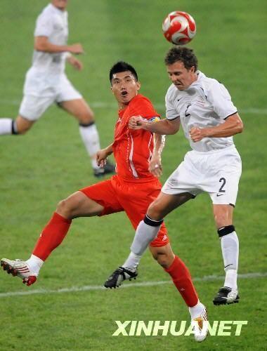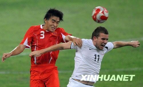 8月7日,中國國奧隊(duì)球員馮瀟霆(左)與新西蘭國奧隊(duì)球員布羅基在比賽中爭搶。當(dāng)日,在沈陽進(jìn)行的北京奧運(yùn)會(huì)男子足球C組的比賽中,中國國奧隊(duì)對(duì)陣新西蘭國奧隊(duì)。新華社記者謝環(huán)馳攝