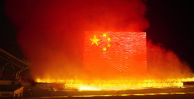 圖為中國駐美大使周文重與當(dāng)?shù)厝A人華僑留學(xué)生一同展示一面從天安門國旗護(hù)衛(wèi)隊拿過來的巨大五星紅旗。 | 9月20日,上千名旅居美國的華人華僑在美國首都華盛頓美國總統(tǒng)府南面外側(cè)的公共草坪上舉行盛大的慶祝活動,同時舉行隆重的升中美兩國國旗儀式,這也是中國國旗第一次由民間組織在白宮前方的公共草坪上升起。