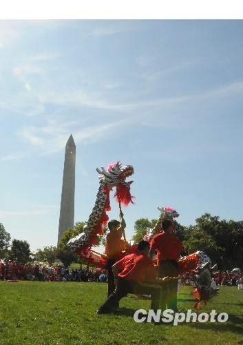 白宮外公共草坪首次升起五星紅旗(組圖)