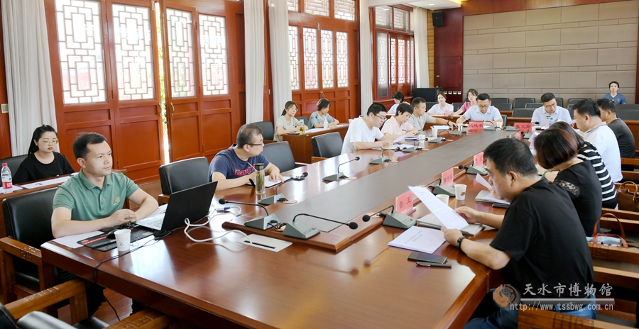 8月3日下午,天水市博物館在暢和軒會議室召開2022年度文物征集工作領導小組第一次會議。市紀委監(jiān)委派駐市委宣傳部紀檢監(jiān)察組副組長王蕓、市審計局副局長焦繼軍受邀出席會議監(jiān)督,市博物館黨總支書記、館長劉玉璞主持會議并講話,黨總支副書記管玉,副館長高世華、崔文剛、張建軍及文物征集小組成員參加了會議。