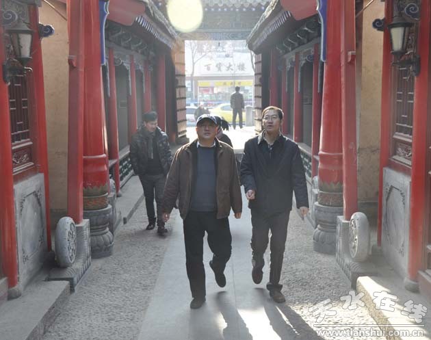 12月30日,甘肅省文化館陳化平館長(zhǎng)一行3人赴天水市文化館調(diào)研指導(dǎo)工作。在天水市文化館館長(zhǎng)李靖同志的陪同下,陳化平館長(zhǎng)一行參觀(guān)了紀(jì)信祠古建筑群,欣賞了大殿明末的壁畫(huà)、清末的牌匾等。并查看了館內(nèi)的辦公用房,聽(tīng)取了市文化館一年來(lái)的品牌活動(dòng)、免費(fèi)開(kāi)放、文物保護(hù)、館際交流、2014年度工作總結(jié)等情況。