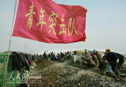 3月2日,農(nóng)歷正月十三,嘉峪關(guān)瑞雪飄飄,北風(fēng)拂面,夾帶著散落的雪花,令人感到雄關(guān)的春天依然充滿冬的寒意 。就在這一天,嘉峪關(guān)迎來了入春后的第一場(chǎng)雪,也迎來了蘭州鐵路局西進(jìn)建線補(bǔ)強(qiáng)會(huì)戰(zhàn)的大軍。這支由來自蘭州鐵路局20余個(gè)部門和單位4000余人及沈陽鐵路局支援蘭州鐵路局的百余名干部職工組成的隊(duì)伍,迅速在蘭新鐵路線河口南火車站至柳溝火車站間掀起了續(xù)戰(zhàn)補(bǔ)強(qiáng)大會(huì)戰(zhàn)的高潮。