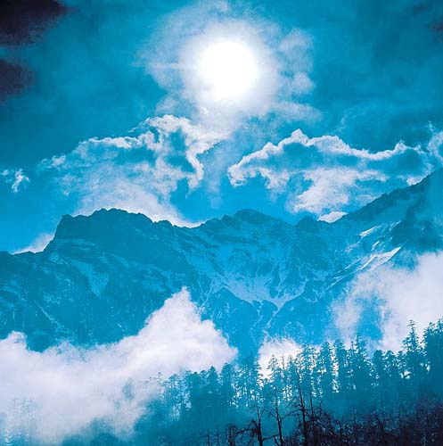 牛恒立“自然的表現(xiàn)”,包括30余幅作品,是他跑遍了四川、云南、西藏、青海、甘肅等西部省份的秀美山川,從眾多攝影作品中精挑細選出來的。整組作品以藍色為主色調(diào),每個畫面都給人一種幽冷靜謐的感覺,勾畫出一片沒有世俗喧囂張揚的氛圍。整組作品就像一位大家閏秀,溫文爾雅,柔美之極,完美體現(xiàn)出了一個“靜”字。