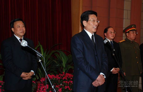 在蘭州飯店,徐守盛代表省委向新一屆省政協(xié)委員表示熱烈的祝賀。他說,政協(xié)甘肅省九屆一次會議以來,在省委的領(lǐng)導(dǎo)下,省政協(xié)圍繞民主和團結(jié)兩大主題,高舉中國特色社會主義偉大旗幟,緊緊圍繞省委經(jīng)濟社會發(fā)展的戰(zhàn)略思路,動員社會各界獻計出力,為全省經(jīng)濟社會發(fā)展作出了重大的貢獻。這次會議是一次換屆的會議,按照政協(xié)章程,各位委員要履行5年的職責,而未來的5年是甘肅經(jīng)濟社會發(fā)展最為關(guān)鍵的5年,這5年是我省在穩(wěn)定解決溫飽,向統(tǒng)籌城鄉(xiāng)發(fā)展,加快推進工業(yè)化、城鎮(zhèn)化的步伐,全面建設(shè)人們期盼的小康社會目標奮進的五年。省第十一次黨代會已經(jīng)為我們描繪了藍圖,確定了“四抓三支撐”的總體工作思路,希望各位委員集中精力開好會議,把今年及未來5年的工作謀劃好,通過政治協(xié)商、民主監(jiān)督、參政議政,為省委、省政府提供有價值的建議和意見,多為我省經(jīng)濟和社會各項事業(yè)的發(fā)展建言獻策,為我省實現(xiàn)又好又快發(fā)展作出應(yīng)有的貢獻。