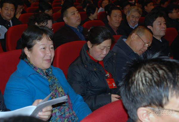 政協(xié)委員認真聽取報告 。(天水在線拍攝)