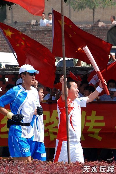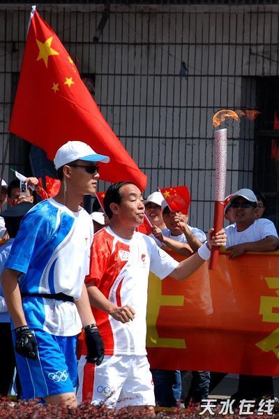 火炬手天水市體育局局長(zhǎng)于國(guó)祥在傳遞火炬