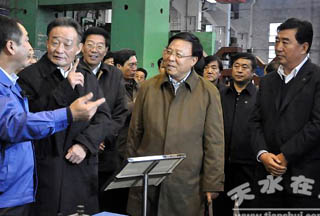 賀信說,剛剛過去的一年,在經(jīng)濟(jì)社會發(fā)展面臨很多困難和挑戰(zhàn)的情況下,甘肅經(jīng)濟(jì)平穩(wěn)較快發(fā)展,民生得到較大改善,災(zāi)后恢復(fù)重建取得重大進(jìn)展,和諧穩(wěn)定的局面不斷鞏固和發(fā)展,各方面工作都取得了顯著成績,各項主要經(jīng)濟(jì)指標(biāo)都實現(xiàn)了兩位數(shù)增長。這些成績的取得,都離不開大家的熱情支持和具體幫助。目前,甘肅正處在加快發(fā)展的關(guān)鍵時期。去年以來,省委、省政府結(jié)合學(xué)習(xí)實踐科學(xué)發(fā)展觀活動,不斷深化對省情的認(rèn)識,在“四抓三支撐”總體工作思路的基礎(chǔ)上,提出了“中心帶動、兩翼齊飛、組團(tuán)發(fā)展、整體推進(jìn)”的區(qū)域發(fā)展戰(zhàn)略,這是甘肅未來發(fā)展的新藍(lán)圖。實施好這一區(qū)域發(fā)展戰(zhàn)略,推動全省經(jīng)濟(jì)社會發(fā)展再上新臺階,更需要各位領(lǐng)導(dǎo)、各位同鄉(xiāng)、各位朋友鼎力相助。我們熱切希望,借助北京甘肅聯(lián)誼會這樣一個平臺,能夠更充分地發(fā)揮大家的智慧和力量,聽取大家的意見和建議。真誠歡迎大家;貋砜纯,近距離感受甘肅的發(fā)展,面對面指導(dǎo)我們的工作。我們也將盡可能地提供各種便利條件,支持聯(lián)誼會的活動,及時通報甘肅工作情況,共同攜手為甘肅美好的明天作出新的貢獻(xiàn)。