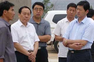 張應(yīng)華與磐安鎮(zhèn)李家坪村村干部交談