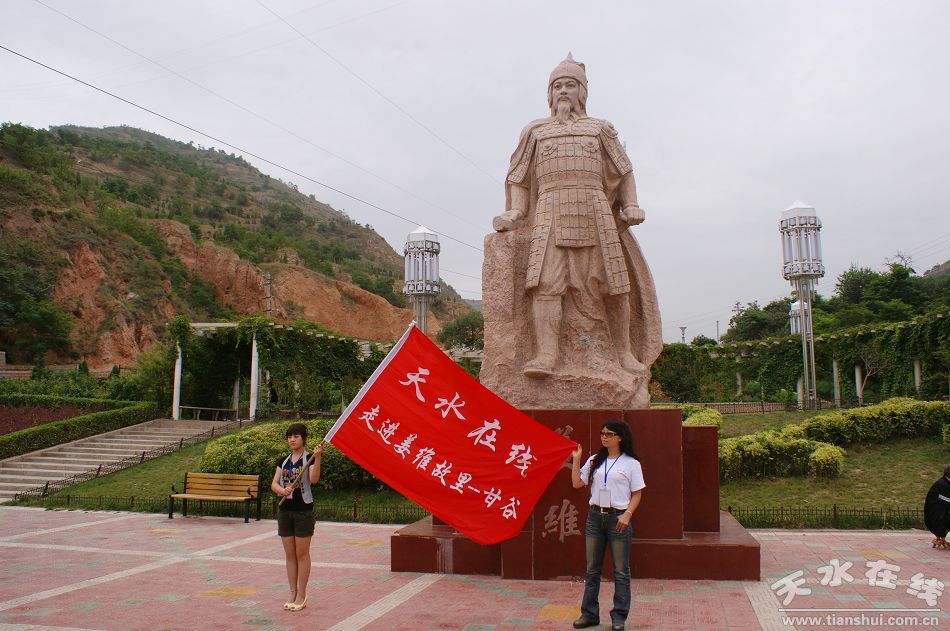 姜維,字伯約,三國(guó)時(shí)天水冀城(今甘谷縣)人。是甘肅早期歷史上的著名人物。姜維逝世后,忠骨埋在四川,但故鄉(xiāng)人民為了紀(jì)念這位大將軍,在距縣城東5公里的姜家莊的將軍嶺上,修建了占地面積近6000平方米的姜維衣冠冢和姜維紀(jì)念館,楊成武將軍題寫(xiě)了四個(gè)大字“姜維故里”。每年清明節(jié),故鄉(xiāng)人都要舉行隆重的祭祀活動(dòng),來(lái)紀(jì)念這位“但有遠(yuǎn)志,不在當(dāng)歸”的大將軍。