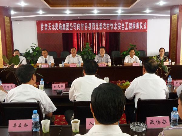 捐款儀式上,昊峰集團(tuán)公司董事長(zhǎng)程俊峰作了講話,并代表公司給甘谷縣西北部農(nóng)村飲水安全工程捐款100萬(wàn)元,甘谷縣委書(shū)記王子生代表縣上四大組織作了熱情洋溢的講話,副縣長(zhǎng)申君明代表縣委、縣政府接受了昊峰集團(tuán)的捐贈(zèng)。
