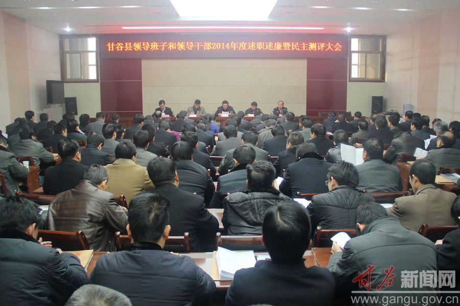 在當(dāng)日上午召開的甘谷縣領(lǐng)導(dǎo)班子及領(lǐng)導(dǎo)干部2014年度述職述廉暨民主測評大會上,縣委書記賈忠慧代表縣委常委班子作述職述廉報告和個人述職述廉報告,縣委副書記、縣長申君明代表縣政府班子作述職述廉報告和個人述職述廉報告,考核組人員對我縣市管領(lǐng)導(dǎo)班子和領(lǐng)導(dǎo)干部進行了民主測評。
