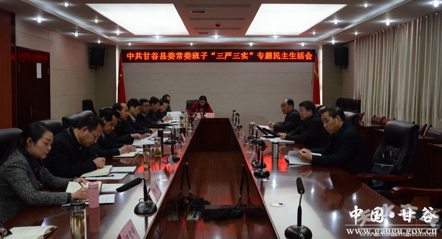 按照中央和省市委“三嚴(yán)三實(shí)”專題教育部署要求,1月5日,甘谷縣委書記賈忠慧主持召開縣委常委班子“三嚴(yán)三實(shí)”專題民主生活會(huì),緊緊圍繞“嚴(yán)以修身、嚴(yán)以用權(quán)、嚴(yán)以律己,謀事要實(shí)、創(chuàng)業(yè)要實(shí)、做人要實(shí)”要求,聯(lián)系班子和個(gè)人實(shí)際深入查擺問題,嚴(yán)肅認(rèn)真開展批評(píng)和自我批評(píng),堅(jiān)持真理,開闊視野,修正錯(cuò)誤,立規(guī)執(zhí)紀(jì),抓好整改,努力形成積極向上、干事創(chuàng)業(yè)、風(fēng)清氣正的政治生態(tài),扎實(shí)推進(jìn)改革發(fā)展穩(wěn)定各項(xiàng)工作。
