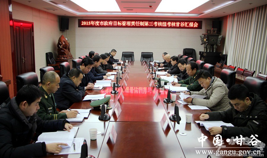1月13日,天水市政府副秘書長焦新德帶領(lǐng)市政府第三考核組,對甘谷縣2015年度目標(biāo)管理責(zé)任書完成情況進(jìn)行考核。副縣長馮全敬及相關(guān)部門負(fù)責(zé)人陪同。