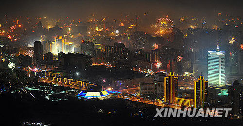 1月25日是農(nóng)歷大年三十,湖北武漢夜空火樹銀花,市民喜迎牛年。新華社記者程敏攝 (本文來源:新華網(wǎng) )