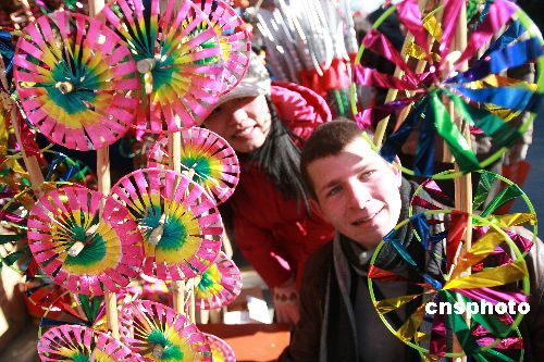2009年1月25日是大年三十,北京各大廟會相繼開幕,北京地壇公園廟會以其獨特的“中國味”,吸引了越來越多的外國游客。中新社發(fā)陳曉根 攝