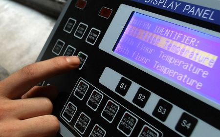 在昨日的試驗(yàn)中,工作人員在26層電梯門(mén)上方的煙感器附近點(diǎn)燃打火機(jī),當(dāng)溫度超過(guò)58℃后,樓道內(nèi)的語(yǔ)音報(bào)警響起,“各位業(yè)主,本樓層發(fā)生火災(zāi),請(qǐng)不要驚慌,本樓層電梯暫時(shí)停止使用,請(qǐng)業(yè)主改乘其他樓層的電梯疏散!彪S即,26層的電梯按鈕“失靈”,其他樓層電梯仍正常運(yùn)行。
