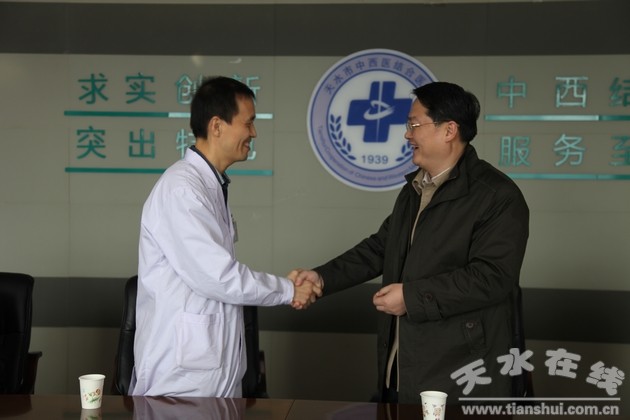 2月9日下午,天水市副市長許強(qiáng)在市人社局、市衛(wèi)生局等負(fù)責(zé)人的陪同下,來到市中西醫(yī)結(jié)合醫(yī)院(市二院)慰問優(yōu)秀專家針灸科主任田小剛。為他對廣大百姓健康所付出的辛勞表示誠摯的謝意并送上新春祝福。