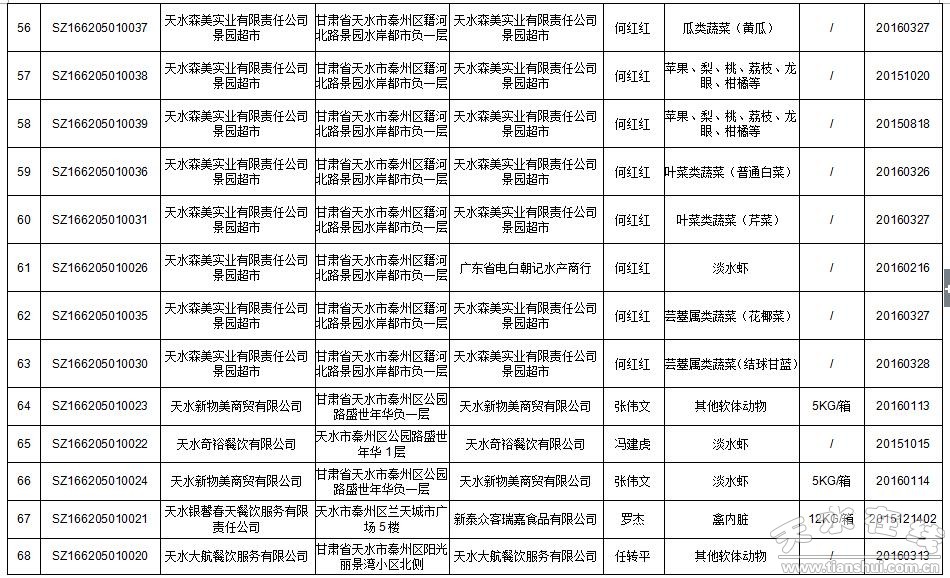 天水市食藥監(jiān)局關(guān)于1~5月份市局本級食用農(nóng)產(chǎn)品監(jiān)督抽檢產(chǎn)品信息的通告
