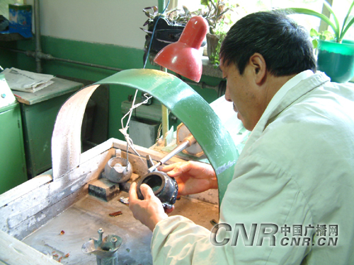 工匠在仔細(xì)打磨夜光杯