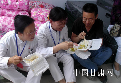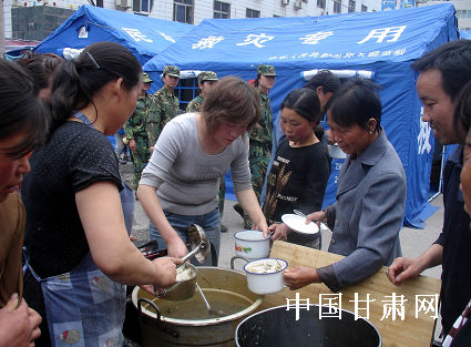災(zāi)后,許多熱心市民為醫(yī)院的病員免費(fèi)送飯。金奉乾攝