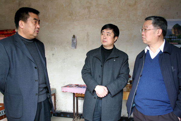 在新入住戶家中。右為邢同義組長,左為市委副書記、紀委書記馬湘賢,中為麥積區(qū)委書記蔣曉強