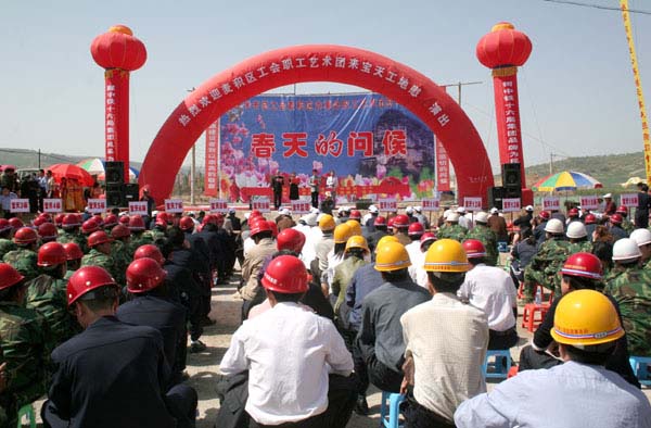 四月的天水姹紫嫣紅、鶯歌燕舞,到處一派春光明媚的景象。4月29日,在“五一”國際勞動節(jié)來臨之際,由市總工會麥積區(qū)辦事處主辦、寶天高速公路協(xié)調(diào)辦協(xié)辦的大型慰問演出“春天的問候”在寶天高速公路BT19標段建設(shè)工地拉開帷幕,給寶天高速公路的建設(shè)者們送上一道豐盛、精美的節(jié)日文化大餐。