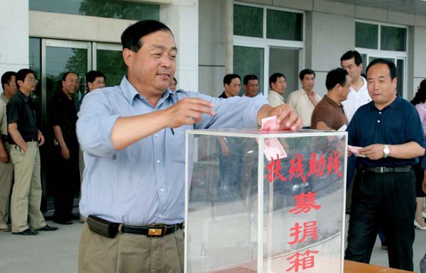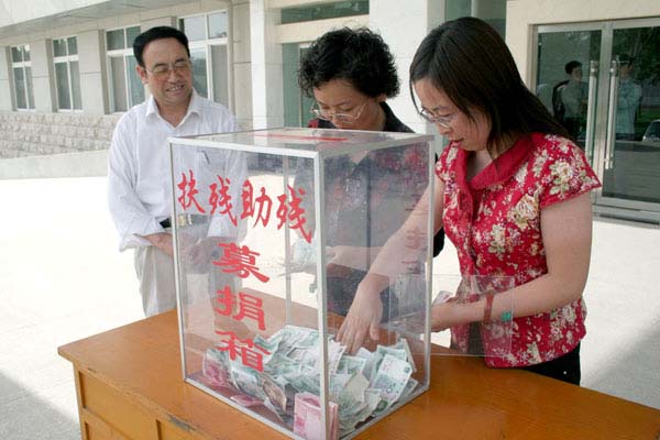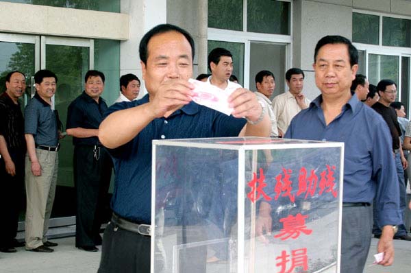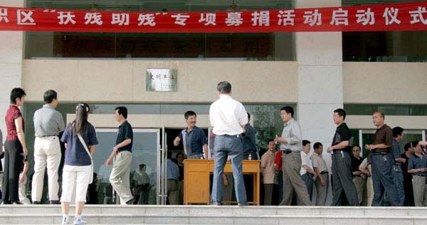 本次募捐活動(dòng)以“愛心奉獻(xiàn)、扶殘助殘、領(lǐng)導(dǎo)帶頭、自主自愿”為原則,從2006年6月開始,7月底結(jié)束,主要分動(dòng)員部署、組織實(shí)施和總結(jié)表彰三個(gè)階段進(jìn)行。