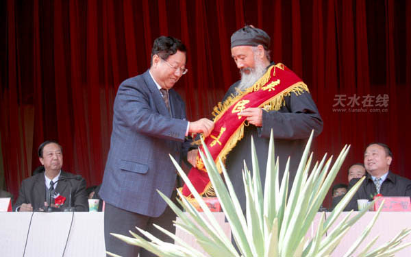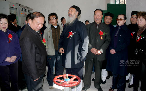 副省長(zhǎng)陸武成、中國(guó)道教協(xié)會(huì)會(huì)長(zhǎng)任法融為工程通水剪彩 配圖:天水在線