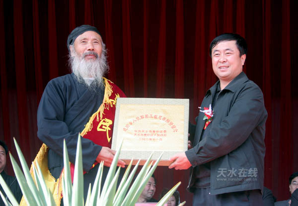 麥積區(qū)委書記蔣曉強(qiáng)代表麥積區(qū)給任法融會長贈送紀(jì)念品