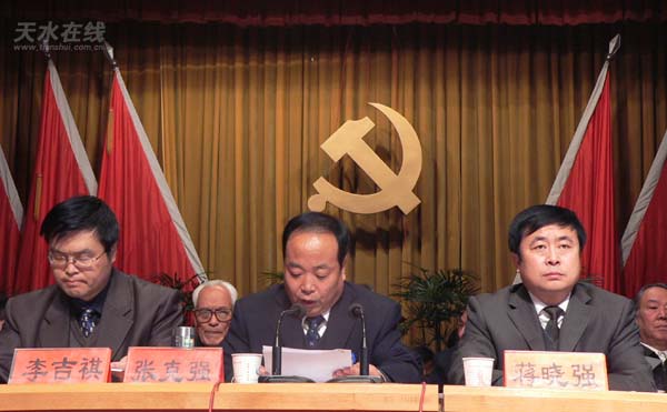 區(qū)委書記蔣曉強(qiáng)代表中國共產(chǎn)黨天水市麥積區(qū)第五屆委員會,作了題為《團(tuán)結(jié)拼搏 乘勢而上 科學(xué)發(fā)展 持續(xù)提速為建設(shè)富裕和諧新麥積努力奮斗》的工作報告。(《報告》全文另發(fā))
