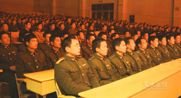 這次慰問演出由共青團麥積區(qū)委組織,天水市二中的廣大師生進行了文藝演出。在一個小時左右的演出中。共為子弟兵演出了歌伴舞《五星紅旗》、舞蹈《千手觀音》、獨唱《軍營飛來一只百靈》及男女二重唱和小合唱等10多個節(jié)目。師生們的精彩演出獲得了子弟兵的陣陣熱烈掌聲,在活躍了軍營文化生活的同時,也加深了軍地雙方的友誼。