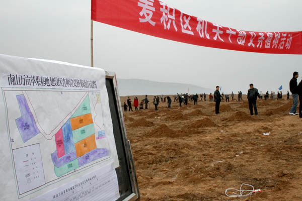為了有力支持全區(qū)今年秋冬季建園工作全面有序展開(kāi),11月14日上午,麥積區(qū)四大組織在家領(lǐng)導(dǎo)帶頭開(kāi)展的區(qū)直機(jī)關(guān)干部義務(wù)植樹(shù)活動(dòng)在南山萬(wàn)畝蘋(píng)果基地全面拉開(kāi)帷幕。