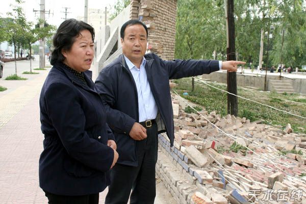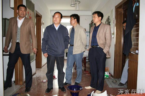 蕭菡一行先后深入到天嘉公司麥積客運(yùn)分公司家屬區(qū)、市二中校園、省建八公司家屬樓、園林管理處辦公地、甘泉鎮(zhèn)包溝村農(nóng)戶家中、橋南建材市場(chǎng)、社棠糧油儲(chǔ)運(yùn)站、金都商城、環(huán)保局辦公樓及天水中油管道燃?xì)庥邢薰镜仁艿卣鹩绊憞?yán)重、存在安全隱患的現(xiàn)場(chǎng),對(duì)地震災(zāi)情進(jìn)行了詳細(xì)的查看。