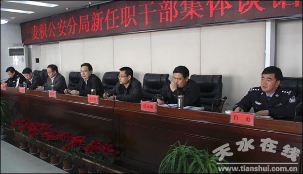 12月31日,麥積區(qū)召開公安分局新任職干部集體談話會(huì)議,按照《黨政領(lǐng)導(dǎo)干部選拔任用工作條例》要求,對(duì)新任職干部進(jìn)行廉政教育,促使各位新任職同志以更高的標(biāo)準(zhǔn)嚴(yán)格要求自己,以公正清廉的形象展示于社會(huì),以加倍的努力投入工作,在新的崗位上為保障全區(qū)經(jīng)濟(jì)社會(huì)轉(zhuǎn)型跨越發(fā)展作出新的貢獻(xiàn)。