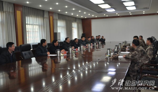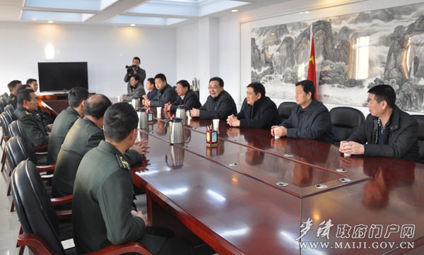 在慰問(wèn)駐區(qū)部隊(duì)時(shí),張智明、賈應(yīng)珍向駐區(qū)部隊(duì)在過(guò)去一年中為建設(shè)和諧麥積做出的貢獻(xiàn)表示感謝,并向全體部隊(duì)官兵表示新春的祝福。張智明、賈應(yīng)珍說(shuō),多年來(lái),駐區(qū)部隊(duì)廣大官兵發(fā)揚(yáng)擁政愛(ài)民的光榮傳統(tǒng),積極參與到地方經(jīng)濟(jì)建設(shè)和重大搶險(xiǎn)救災(zāi)中來(lái),在促進(jìn)麥積經(jīng)濟(jì)發(fā)展及社會(huì)穩(wěn)定等方面做出了積極貢獻(xiàn)。特別在去年6.19特大暴雨災(zāi)害發(fā)生后,廣大官兵發(fā)揚(yáng)了不怕?tīng)奚,不畏艱險(xiǎn)的戰(zhàn)斗精神,用實(shí)際行動(dòng)證明了我們的部隊(duì)是一支招之能來(lái)、來(lái)之能戰(zhàn)、戰(zhàn)之能勝的部隊(duì)。張智明、賈應(yīng)珍表示,在新的一年里,麥積區(qū)將一如既往地關(guān)心和支持部隊(duì)建設(shè),努力為駐區(qū)部隊(duì)自身建設(shè)提供最大的支持和幫助,為廣大部隊(duì)官兵營(yíng)造良好的工作生活環(huán)境。