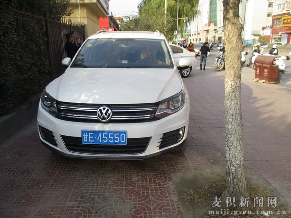 ▲甘AJG179于2016年11月14日10時(shí)35分在麥積區(qū)興隴路華龍大酒店前人行道上違法停放,違反了《中華人民共和國道路交通安全法》第56條之規(guī)定,屬違法行為,已由城管執(zhí)法局移送交警部門依法處理。