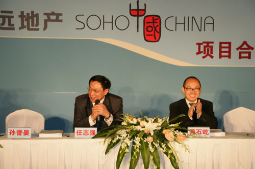 今天,在華遠(yuǎn)成功收購(gòu)幸福實(shí)業(yè)上市公司之際,我們SOHO中國(guó)又與我們的老朋友華遠(yuǎn)成交了兩單大生意,對(duì)華遠(yuǎn)公司來說是喜上加喜,對(duì)SOHO中國(guó)來說也是一件大喜事。所以,今天是我們雙方大喜的日子。