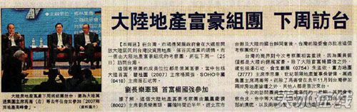 臺灣媒體關(guān)于大陸房產(chǎn)商訪臺的報道