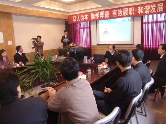 市中支副行長王和平做了題為《建設(shè)文明單位 創(chuàng)建學習型央行 加強文化建設(shè)再創(chuàng)人行天水市中心支行系統(tǒng)各項工作新局面》的主題報告,指出天水中支人行系統(tǒng)文明單位創(chuàng)建工作的目標是:加強領(lǐng)導班子建設(shè),使之成為政治堅定、清政廉潔、團結(jié)協(xié)作、求實創(chuàng)新、奮發(fā)有為的堅強集體;以人的全面發(fā)展為根本,建設(shè)一支學習型、研究型、專家型、務(wù)實型、開拓型干部職工隊伍;依法行政、開拓創(chuàng)新,認真履行央行職責,不斷提高金融工作水平,實現(xiàn)物質(zhì)文明、政治文明和精神文明的協(xié)調(diào)發(fā)展。力爭在本創(chuàng)建年度內(nèi)把中心支行建成國家級、秦安縣支行建成總行級文明單位,把其余一至兩個縣支行建成分行級文明單位。一是要加強領(lǐng)導,營造濃厚的文明單位創(chuàng)建氛圍;二是把開展“創(chuàng)爭”活動和創(chuàng)建央行文化擺在重要位置,與文明單位建設(shè)工作齊抓共管;三是開展“創(chuàng)建學習型銀行、爭做知識型員工”活動是適應(yīng)人民銀行職能調(diào)整的迫切要求,對于一個組織或一個人來說,要適應(yīng)時代的競爭與挑戰(zhàn),靠“跟著感覺走”不行,靠“用昨天的知識,指導未來的工作”更不行,必須堅持以人為本,加強員工隊伍建設(shè),更新學習觀念,創(chuàng)新學習方式,豐富學習內(nèi)容,掌握金融理論,提高工作本領(lǐng),努力建設(shè)一支“學習型、研究型、專家型、務(wù)實型、開拓型”的央行干部隊伍。秦安縣支行在“創(chuàng)爭”活動中,全行本科學歷人員從2003年的6人增加到現(xiàn)在的23人,占77%,取得實效。秦安縣支行在央行文化建設(shè)中,從精神文化、環(huán)境文化、制度文化、和諧文化、形象文化和學習文化六個方面建立框架網(wǎng)絡(luò),全面構(gòu)建央行文化體系,并通過實施,取得了較為顯著的效果。
