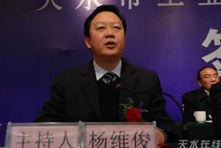 值此辭舊迎新的喜慶時刻,我們迎來了胡振民主席率領(lǐng)的中國文聯(lián)“送歡樂下基層”慰問演出的各位領(lǐng)導和藝術(shù)家們。在此,我謹代表天水市委、市人大、市政府、市政協(xié)和360萬天水人民,向各位領(lǐng)導和全體演職人員及新聞界的朋友們表示熱烈的歡迎和誠摯的問候!向長期以來關(guān)心和支持天水發(fā)展的各位領(lǐng)導和社會各界人士表示衷心的感謝!致以新年的祝福和美好的祝愿!