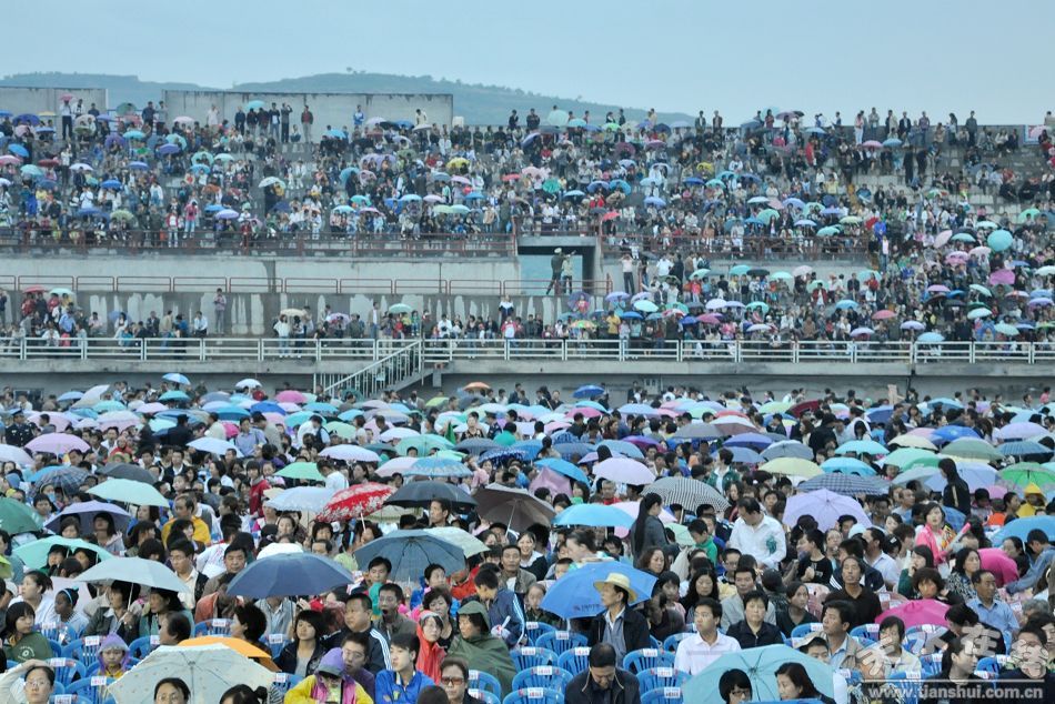接著,眾明星也是紛紛登臺亮相,個個都拿出自己的絕活,拿手好戲,向秦安人民,天水市人民進行展示。阿里朗組合一上臺就演出了《蘭花子》,似乎一首歌曲并不能引起秦安人民的重視,于是他們又演出了《阿里朗》等歌曲。接著眾明星似乎又來了激情,也攪動了演出現(xiàn)場,尤其是平易近人的陳琳一上臺,盡管天空還下著毛毛細(xì)雨,舞臺上也有點濕滑,她干脆脫下了鞋子,光著腳丫,在臺上來回走動,一邊跳動,一邊歌唱,一曲《你的柔情我永遠(yuǎn)不懂》讓全場觀眾似乎懂了的是她的激情和熱情,于是她又為觀眾奉上了《為你喝彩》等歌曲。