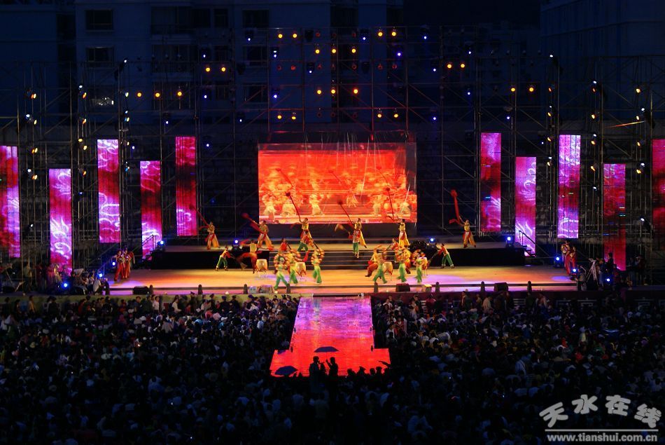 這次“景園之夜”大型明星演唱會以“弘揚抗震救災(zāi)精神,展示羲里媧鄉(xiāng)風(fēng)采”為宗旨,可以說是巨星云集,點燃激情,沸騰秦安,晚會在甘肅民族歌舞團的《祝福吉祥》大型歌舞中拉開了帷幕,接著全國著名影星、主持人曹穎和天水本地著名主持人王曉霞、朝輝閃亮登場。