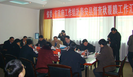 11月20日,省監(jiān)察廳副廳長(zhǎng)馮慶昌帶領(lǐng)省委、省政府督查組,在天水市政府副市長(zhǎng)彭鴻嘉、市農(nóng)業(yè)局局長(zhǎng)劉來(lái)生、市監(jiān)察局副局長(zhǎng)安長(zhǎng)林、市農(nóng)業(yè)局副局長(zhǎng)王全保、秦安縣委書(shū)記陳天雄,縣委常委、紀(jì)委書(shū)記張永剛,副縣長(zhǎng)王金珍,縣政協(xié)副主席康森林及縣直相關(guān)部門(mén)負(fù)責(zé)人的陪同下,對(duì)秦安縣秋膜覆蓋工作進(jìn)行了督查。督查組一行深入蓮花鎮(zhèn)郭河村進(jìn)行了實(shí)地檢查。副市長(zhǎng)彭鴻嘉主持了匯報(bào)會(huì),縣委常委、紀(jì)委書(shū)記張永剛作了工作匯報(bào),縣委書(shū)記陳天雄、省監(jiān)察廳副廳長(zhǎng)馮慶昌分別作了講話。