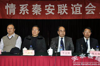 李文卿在講話中代表市委、市政府為北京情系秦安聯(lián)誼會成立表示祝賀,對秦安籍在京人士對天水的關(guān)心和支持表示感謝。他說,水是家鄉(xiāng)清,月是故鄉(xiāng)明,游子千里行,依依桑梓情。眷戀故土、回報家鄉(xiāng)是天水同鄉(xiāng)內(nèi)心共同的牽掛和心愿。他希望天水籍在京各界人士要樹立大故鄉(xiāng)的概念,進一步增強熱愛家鄉(xiāng)的深厚情感。要珍惜在北京學習工作的機會,練就本領(lǐng),實現(xiàn)創(chuàng)業(yè),盡職盡責,干好工作。要建立廣泛的鄉(xiāng)情基礎(chǔ),相互支持,相互幫助,發(fā)揮優(yōu)勢,各盡所能,全力支持家鄉(xiāng)建設(shè)。要利用網(wǎng)絡(luò)等各類平臺,為家鄉(xiāng)發(fā)展多提寶貴意見和建議。