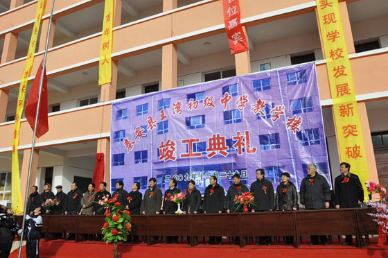 12月29日,秦安縣舉行王灣中學(xué)教學(xué)樓竣工典禮。甘肅省委組織部黨員教育處處長王建強(qiáng),天水市委副書記張應(yīng)華,市委常委、宣傳部長王光慶,市委常委、副市長郭奇若,市人大副主任黃郁,市政府副秘書長雷天錄,市體育局局長于國祥,市教育局副局長伏平,市紅十字協(xié)會常務(wù)副會長周長生以及秦安縣委書記陳天雄,縣人大常委會主任賈萬祥,縣委副書記、縣長王東紅,縣政協(xié)主席高霆鈞,縣委副書記程江芬,縣委常委、組織部長郭海軍,縣委常委、宣傳部長李尚平,縣人大常委會副主任魏千乙,副縣長、縣委辦主任郭雙江,縣政協(xié)副主席馬振寰出席了竣工典禮。
