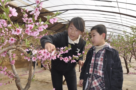 正月初十,記者走進興國鎮(zhèn)依仁村棚桃示范園,但見一排排果樹桃花怒放,繁花似錦,果農(nóng)劉志崗、薛小琴夫婦正在忙著給桃樹疏花疏果。他們告訴記者,春節(jié)期間,他家的5座棚桃全部進入開花期,為了不誤農(nóng)時作務果園,他們將兒女帶到桃園過年,還雇用了4個民工幫著疏花疏果。盡管在田間勞動沒有休息,過年沒家里熱鬧,但心里卻十分快活。依仁村村委會主任安輝俊介紹說,劉志崗家作務的5個桃棚,一年可產(chǎn)油桃1萬余斤,收入近10萬元。果蔬生產(chǎn)是依仁村的一大特色支柱產(chǎn)業(yè),目前全村已建成總面積達668畝的果蔬生產(chǎn)基地,發(fā)展塑料大棚800多座,日光溫室60多座,年產(chǎn)果蔬170多萬公斤,產(chǎn)值達250萬元。2008年,全村農(nóng)民人均純收入達到2800多元。