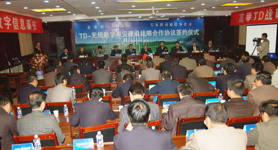 經(jīng)秦安縣政府和中國(guó)移動(dòng)天水分公司的深入?yún)f(xié)商,秦安縣人民政府與中國(guó)移動(dòng)天水分公司的戰(zhàn)略合作框架協(xié)議已經(jīng)正式形成。2010年4月8日,TD-無線數(shù)字秦安建設(shè)戰(zhàn)略合作協(xié)議簽約儀式在縣行政中心舉行。中國(guó)移動(dòng)天水分公司總經(jīng)理張嘉祥,中國(guó)移動(dòng)天水分公司紀(jì)檢書記、工會(huì)主席楊琦,中國(guó)移動(dòng)天水分公司副總經(jīng)理王希周、白建濤,秦安縣委書記陳天雄,縣人大主任賈萬祥,縣政協(xié)主席高霆鈞,縣委副書記程江芬,縣委常委、副縣長(zhǎng)李全明,縣政府副縣長(zhǎng)郭雙江以及各鄉(xiāng)鎮(zhèn)黨委書記、縣直有關(guān)單位和企業(yè)負(fù)責(zé)人參加了簽約儀式。