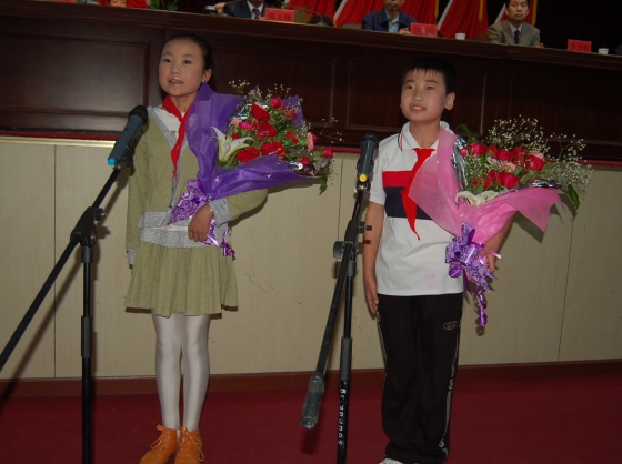 少先隊員向勞動模范獻詞