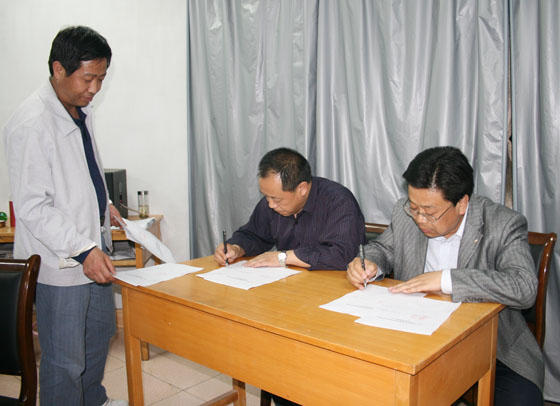縣政府副縣長(zhǎng)、招委主任郭雙江與相關(guān)部門、完中簽訂2010年高考目標(biāo)管理責(zé)任書